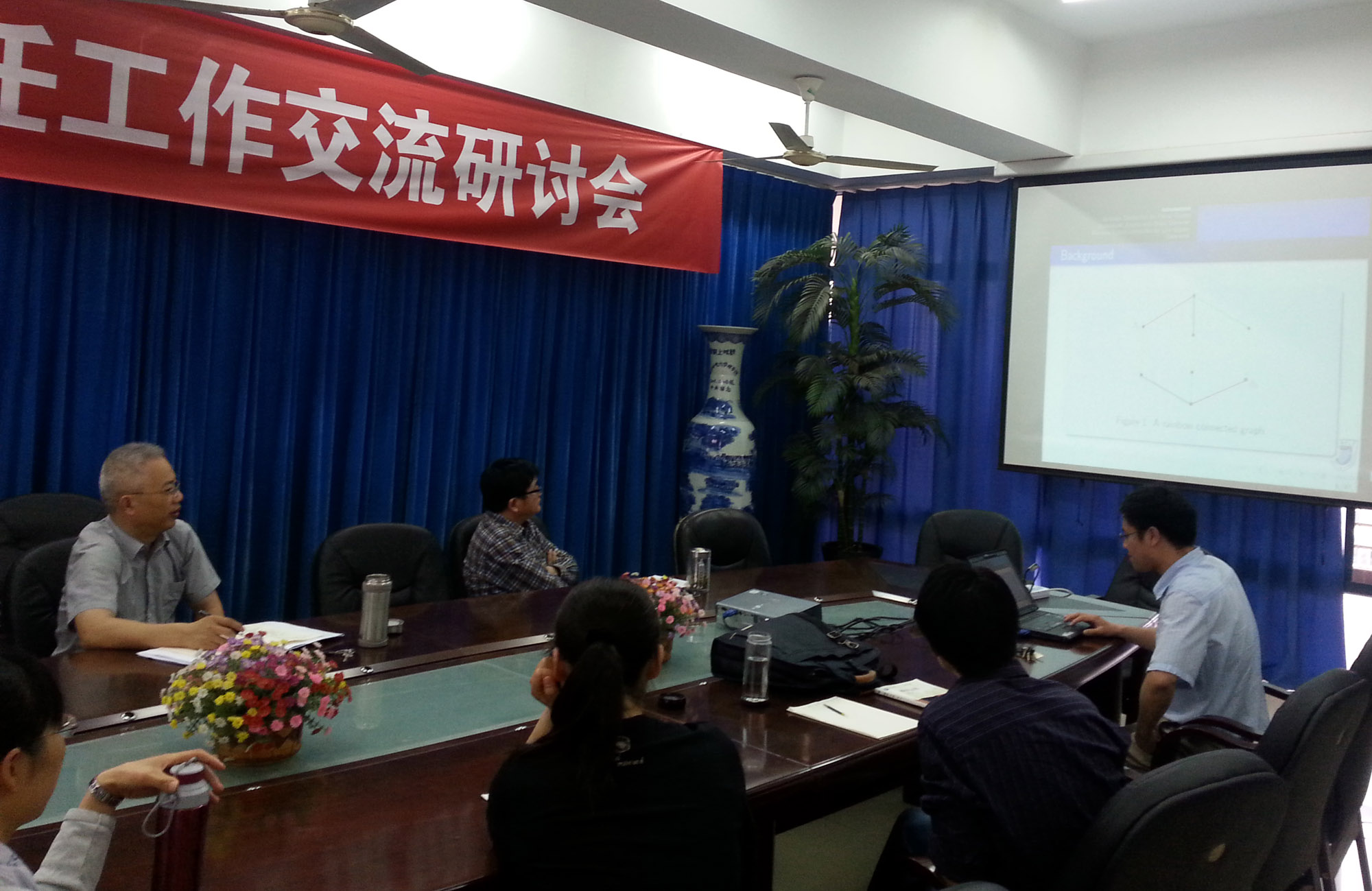 2015年5月27日下午14:00,437bwin必赢国际官网在教2-501会议室举办理学论坛第六十次学术活动,论坛邀请437bwin必赢国际官网黄小龙博士做了题为:“平面图和线图上的彩虹连通性研究”的学术报告,报告会由437bwin必赢国际官网副院长兼统计系主任唐加山教授主持。