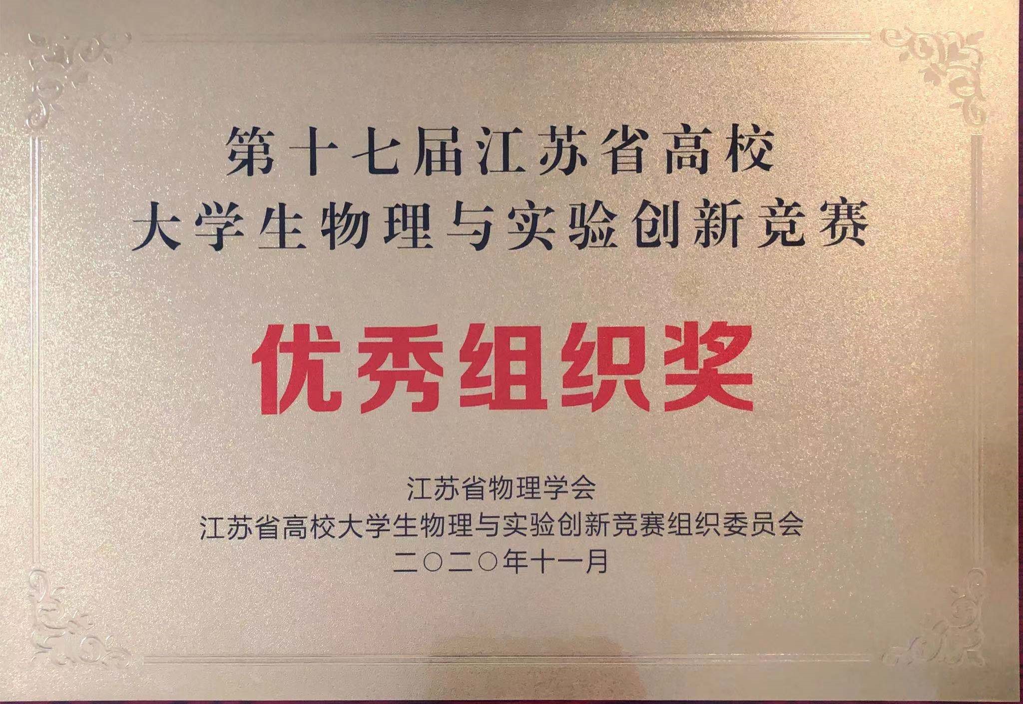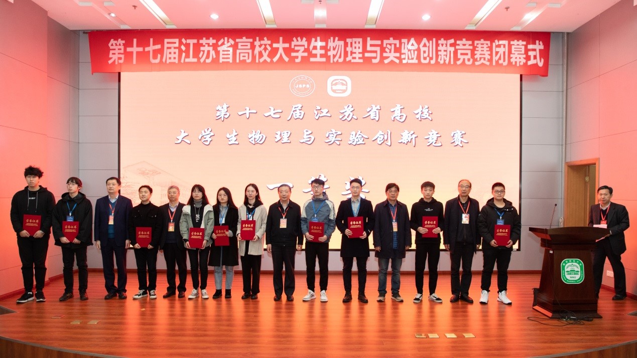近日,江苏省高校第十七届大学生物理及实验作品创新竞赛在南京师范大学举行。我校8项作品参加决赛评比,获一等奖2项、二等奖4项、三等奖2项,五位指导教师获评“优秀指导教师”,我校再次荣获“优秀竞赛组织单位”称号。
