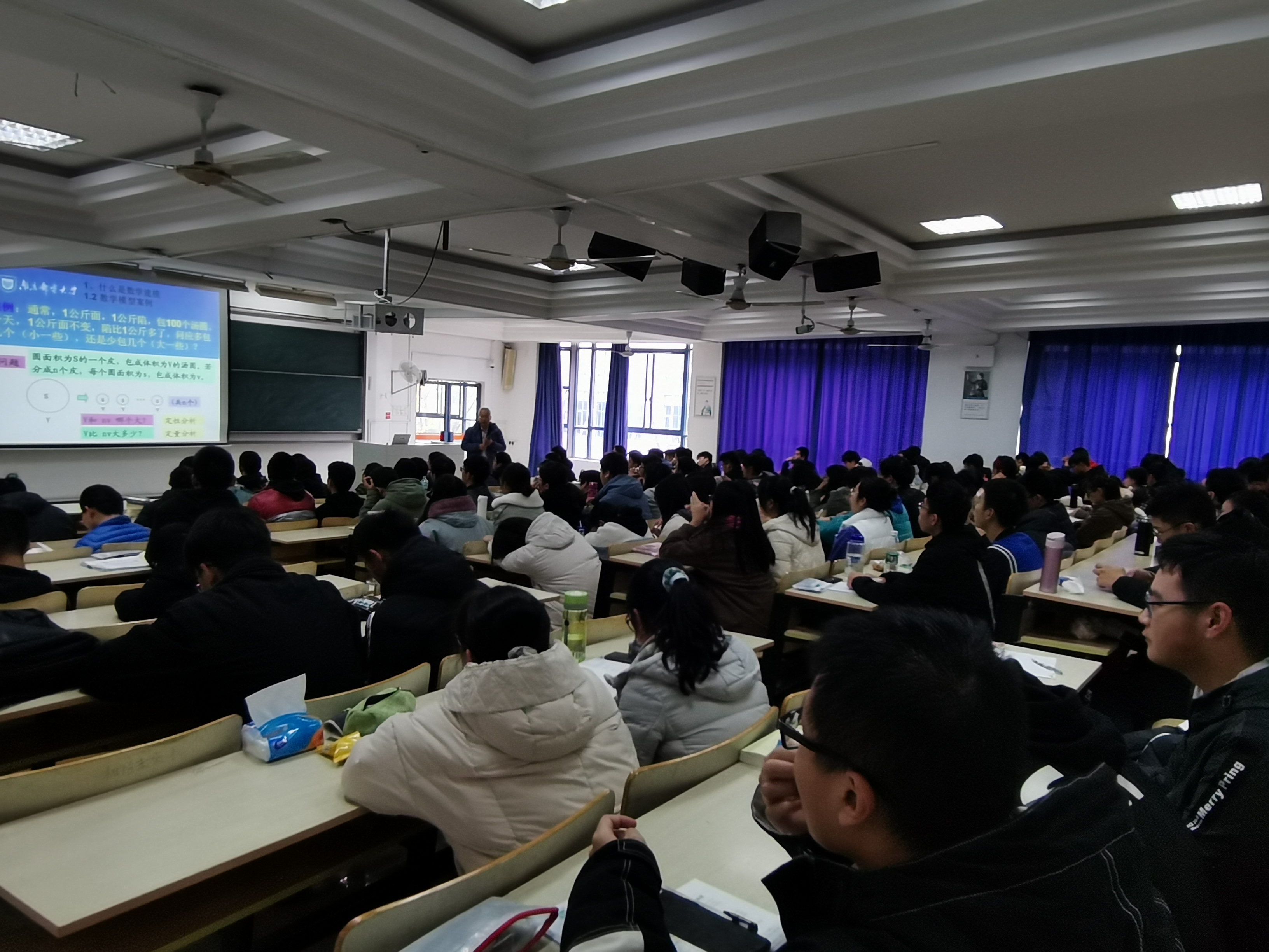唐院长以南邮红色校史入手,介绍了我校数学建模的历史传承和优异成绩,并深入浅出地为同学们介绍了什么是数学建模和数学模型,以日常生活中的具体问题建模为例,现场引导大家思考与探索数学建模的趣味。随后,唐院长介绍了数学建模相关竞赛、我校历年参赛情况、奖励政策、参赛信息及参赛要点,并提出了学习和参赛上的切实建议,鼓励各位同学秉承南邮精神,积极参与数学建模竞赛。他表示,数学建模是一个在老师引导下学生主动参与的过程,可以培养学生的自学能力和初步科研能力,参加竞赛的意义不仅仅是获奖,重要的是在大学生活中要确立目标,为自己的理想努力拼搏。