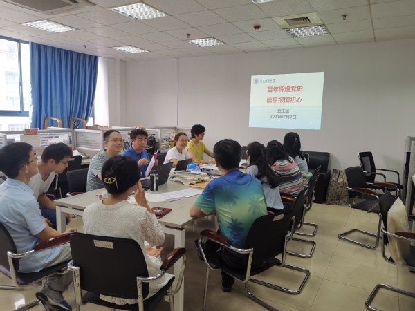 2021年7月2日上午,信息与计算科学系支部全体党员教师在教2-326(1)办公室集中开展党史学习教育系列学习党课。副院长金正猛教授主讲了“百年辉煌党史、信息报国初心”专题党课。本次党课活动由支部书记戴建新召集和主持。