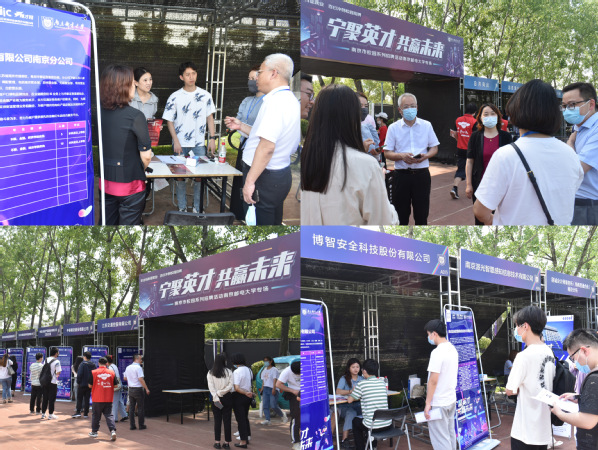 为更好的促进我院毕业生充分就业,畅通用人单位和毕业生双选渠道,437bwin必赢国际官网配合437bwin必赢国际官网招生就业处承办“筑梦莫愁畔,奋进新百年”专场校园招聘会。6月1日下午,437bwin必赢国际官网访企拓岗领导小组组长学院院长唐加山、党委书记尹志丽带队,与学院党委副书记、副院长汪颖,毕业班辅导员王红月一同到招聘现场,与用人单位、求职毕业生进行深入交流,了解企业用人要求,解答毕业生就业困惑。