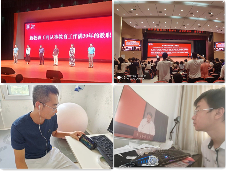 2022年9月9日14:00,学校在青春剧场举行了第38个教师节庆祝大会,大会进行了线上同步直播。物理实验教学中心的全体教师(下午有上课任务的除外)都自行观看了视频直播,有少数老教师和新教师代表在现场参加了庆祝大会,大家共同感受了节日的热烈气氛。