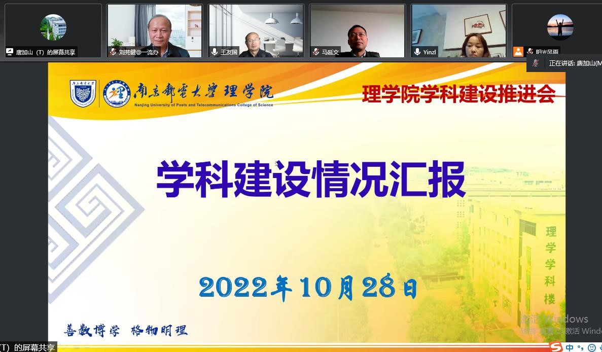 10月28日下午,437bwin必赢国际官网以线上方式召开学科建设推进会。校党委常委、副校长王友国教授,苏州工业职业技术学院院长马延文教授,校一流学科和高水平大学建设办公室主任刘芫健教授,437bwin必赢国际官网党委书记尹志丽,党委副书记、院长唐加山等学院班子成员,数学和物理学学科主干方向负责人出席会议,会议由校一流学科和高水平大学建设办公室主任刘芫健教授主持。