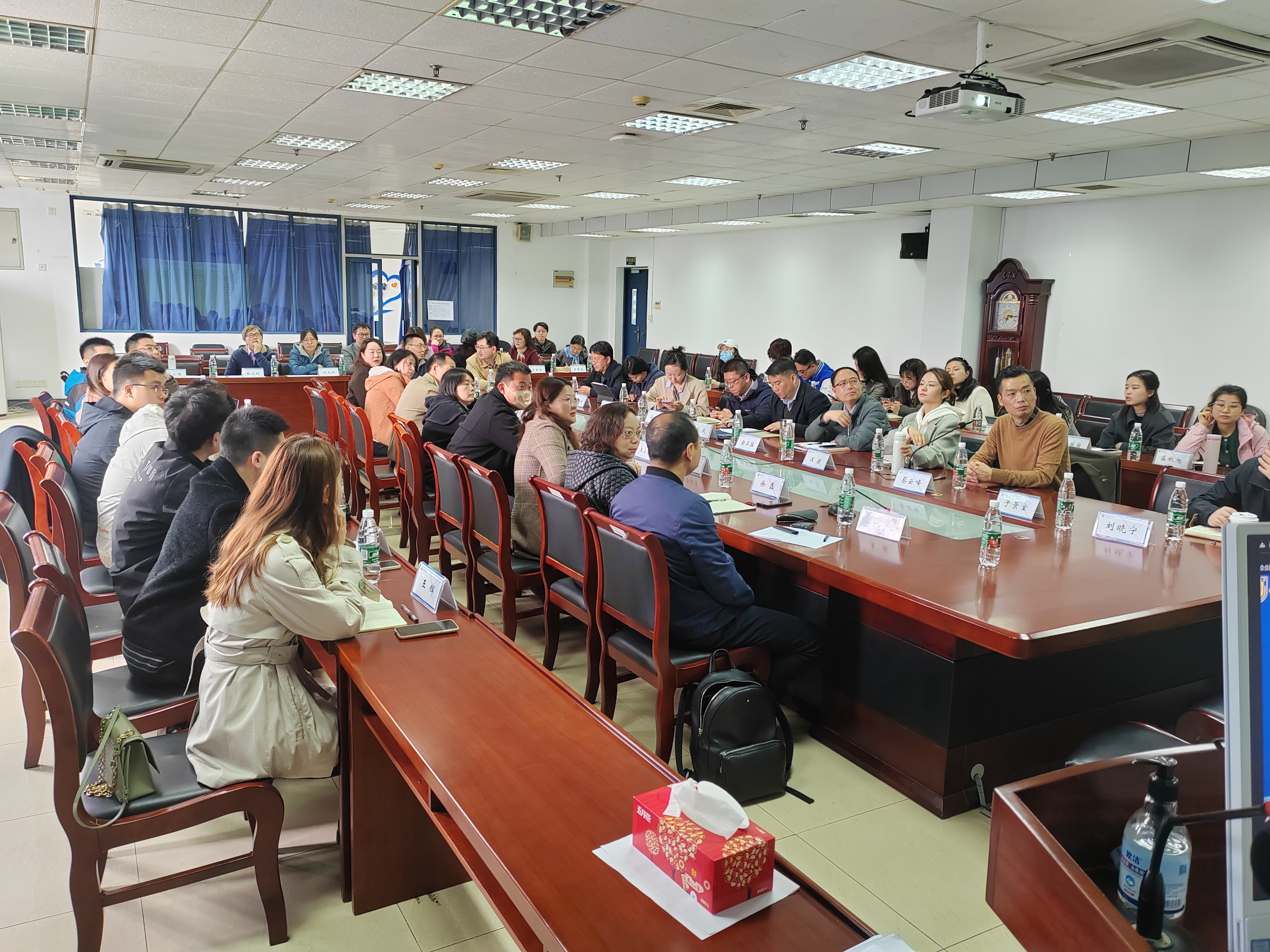 随后中心副主任秦芳芳和高数课程组负责人代表万彩云老师结合课程类别、教学实践和问卷调查,依次对近三年高等数学各课程成绩数据做了详细剖析,指出了学生在高数课程学习中存在的主要困难和问题。接着各学院副书记、副院长和辅导员结合各自学院专业需求和学生个体的不同特点对高等数学课程的教学和管理积极建言,气氛热烈。最终对“如何对学生加强科学管理、如何改善学生高数学习策略和如何更高效提高课堂教学质量”等达成了初步共识。