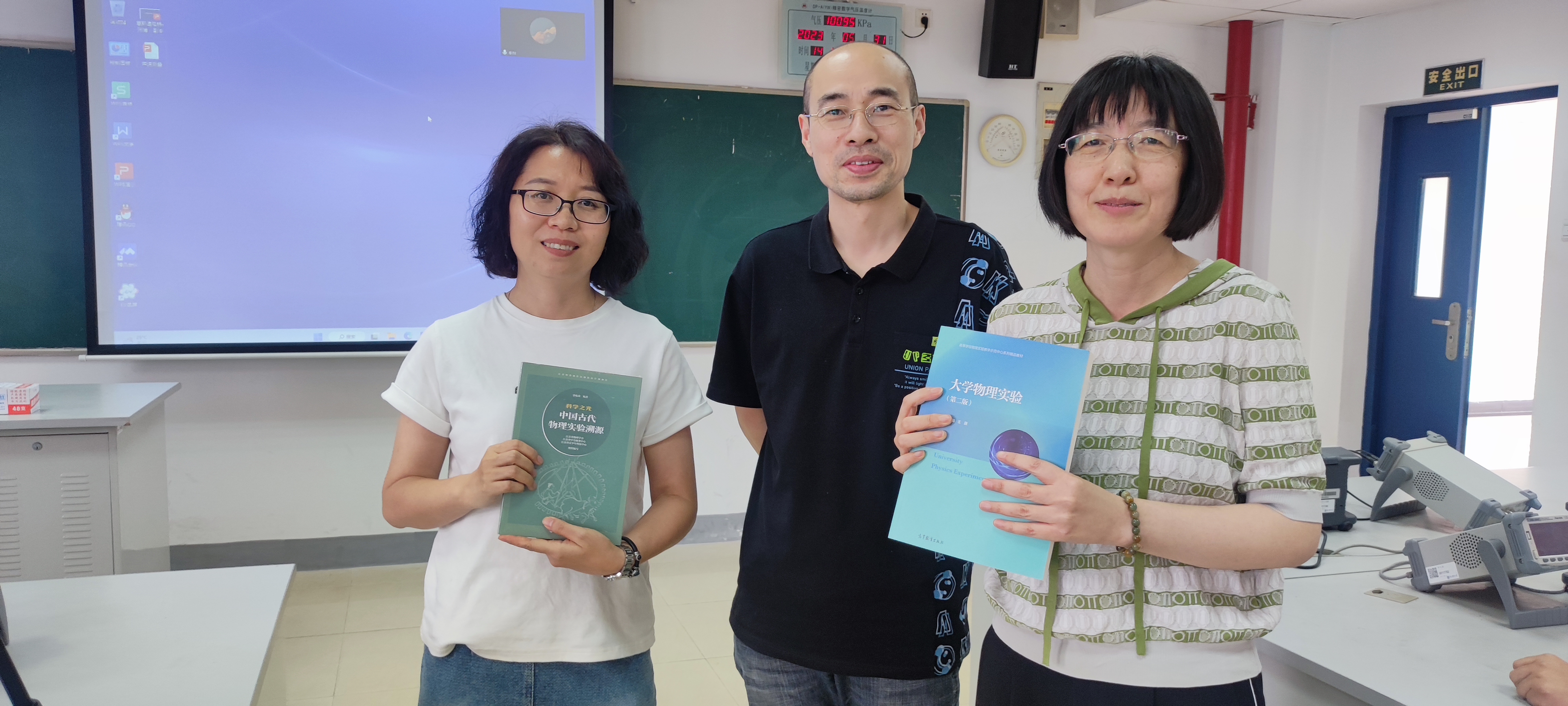 沙龙结束时,物理实验教学中心主任毛巍威为两位教学沙龙主讲教师赠送物理实验相关精品教材。