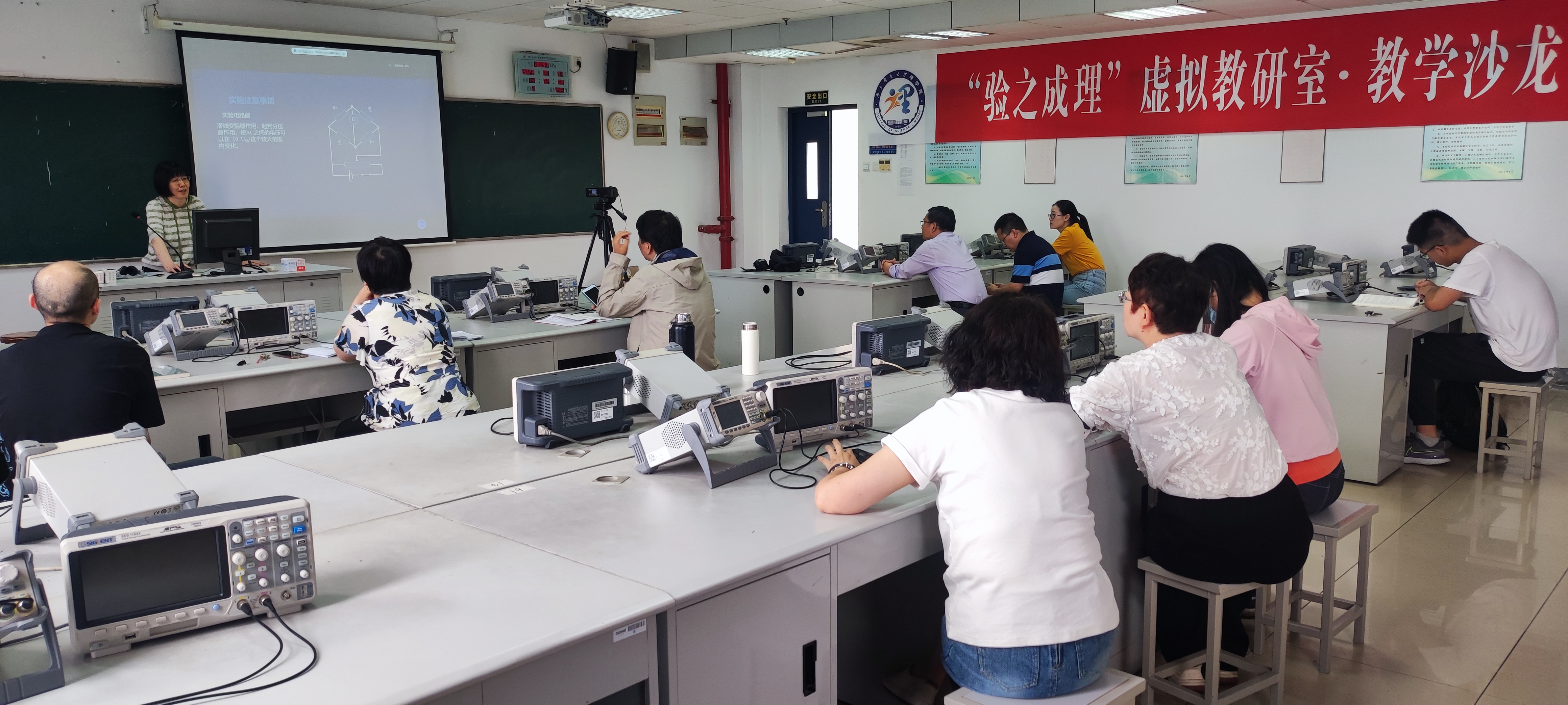 5月31日下午,“验之成理”虚拟教研室在教二418实验室开展了教学沙龙第6讲和第7讲的活动,沙龙同步开启腾讯会议(#324 689 238)直播。教学沙龙由物理实验教学中心副主任王利霞主持,虚拟教研室的在校教师均参加了沙龙活动,线上线下会场累计参加人数近30人。