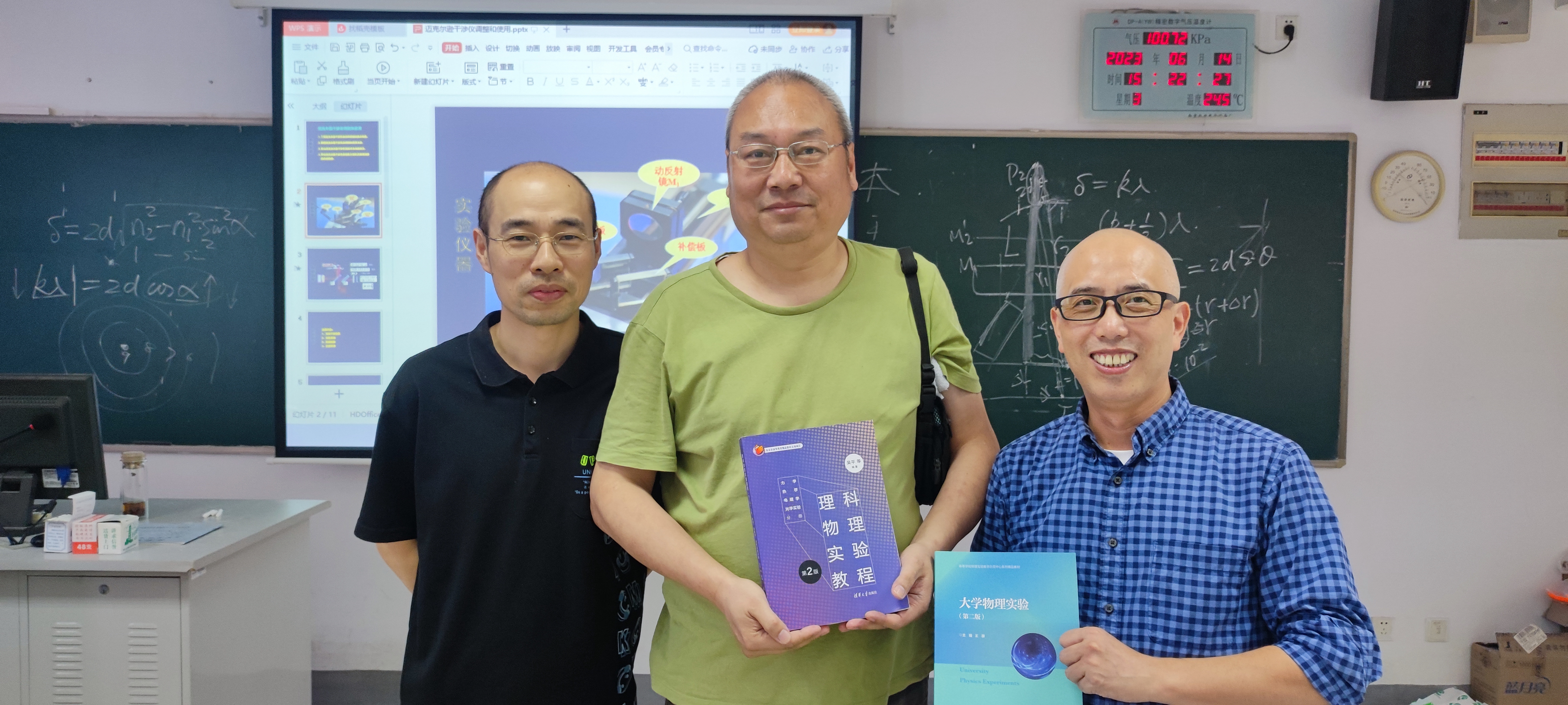 6月14日下午,“验之成理”虚拟教研室在教二418实验室开展了教学沙龙第8讲和第9讲的活动,沙龙同步开启腾讯会议(#761 291 937)直播。教学沙龙由物理实验教学中心党支部书记何学敏主持,虚拟教研室的在校教师均参加了沙龙活动,线上线下会场累计参加人数近20人。