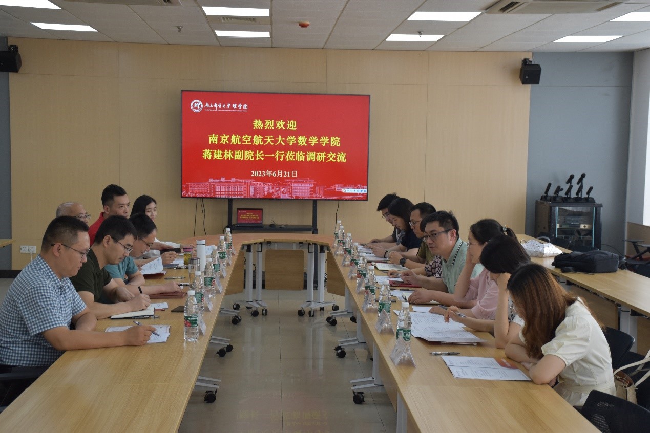 2023年6月21日下午,南京航空航天大学数学学院蒋建林副院长一行来我院调研交流,我院相关负责人参加调研交流,437bwin必赢国际官网副院长金正猛主持会议。