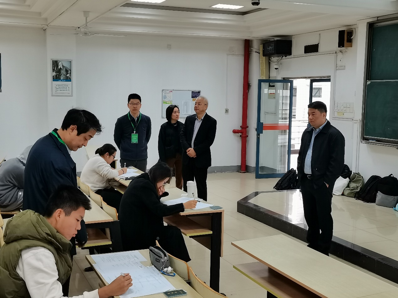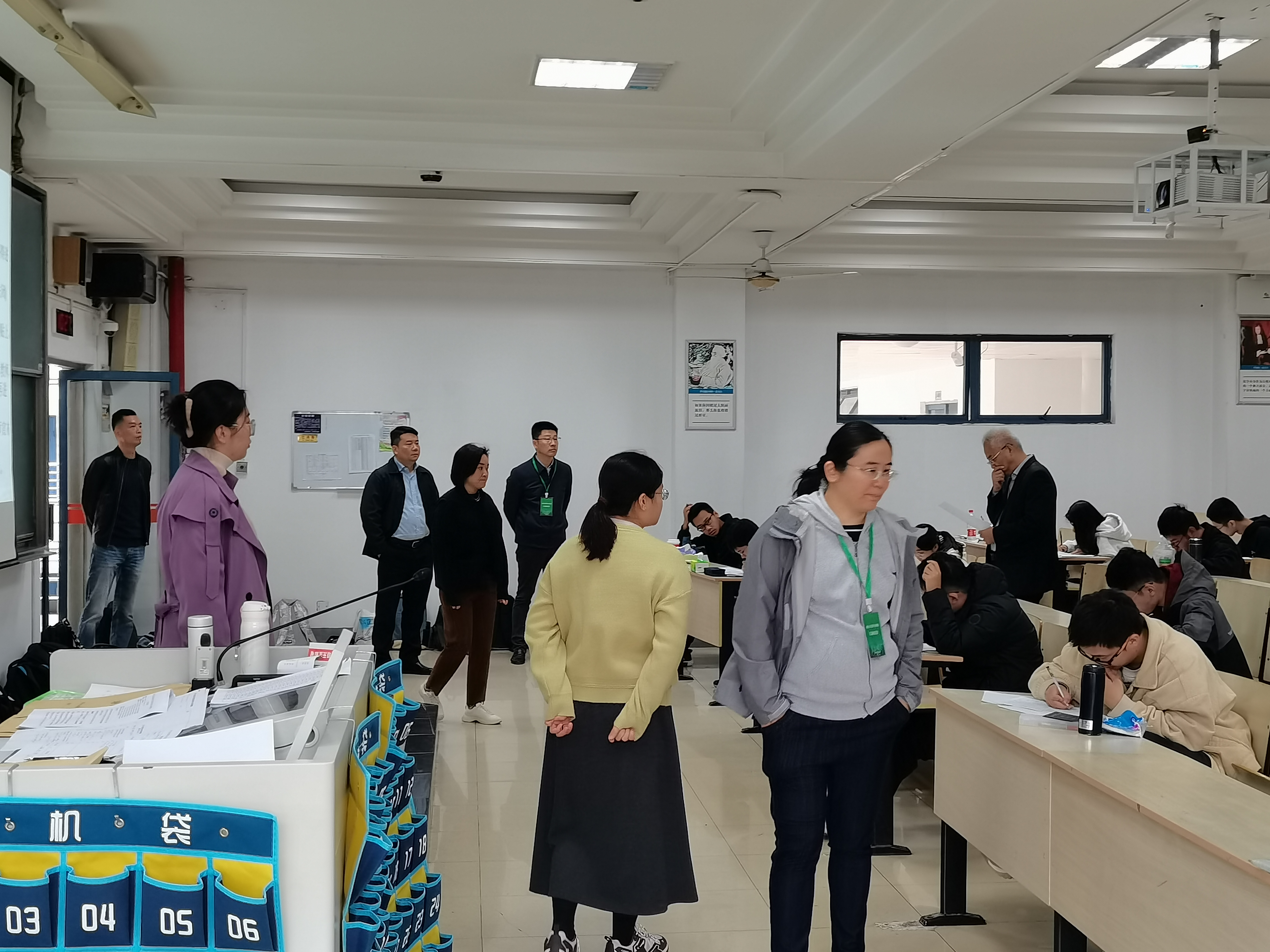 今年,全国共有1108所本科院校近29万人报名参赛。江苏赛区的竞赛工作由江苏省数学会组织承办,共有65所本科院校19886人报名参加赛。本届竞赛的预赛于2023年11月11日举行,比赛当天,江苏赛区工作组南京师范大学数学科学学院原院长尹会成教授,南京师范大学数学科学学院徐剑波书记和汪艳秋院长莅临南邮考点指导,教务处臧庆副处长、437bwin必赢国际官网唐加山书记、高丽副院长、王正新院长助理、高等数学教学中心蔡云峰主任等陪同巡考。