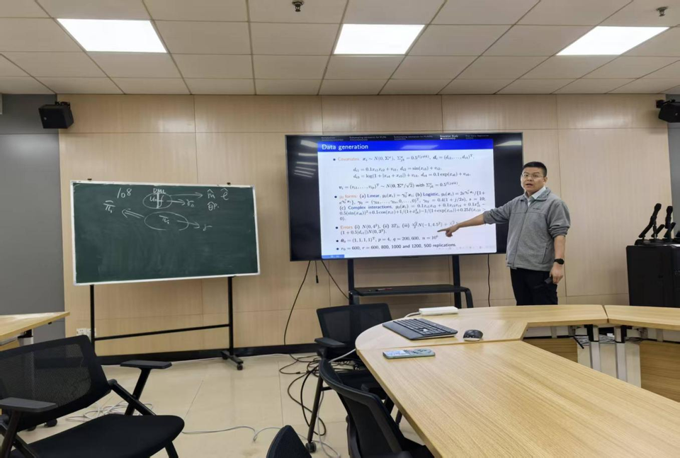 2025年11月21日下午,由437bwin必赢国际官网主办的“理学论坛”第259场学术报告会顺利举行。南开大学统计与数据科学学院王磊教授应邀作题为《Optimal subsampling for high-dimensional partially linear models via machine learning methods》的学术报告。报告会由唐加山老师主持,吸引了我院数学、统计等多个学科师生到场聆听。