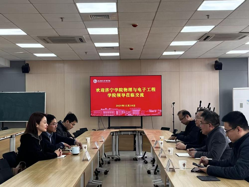 12月10日,济宁学院物理与电子工程学院党委书记卫建勋、院长岳现房一行莅临我院开展调研交流,重点围绕学科建设、科研创新、师资队伍、学生升学与就业等核心议题展开深入探讨。我院党委书记李永涛、副书记、副院长汪颖、副院长王正新等热情接待并参与座谈。