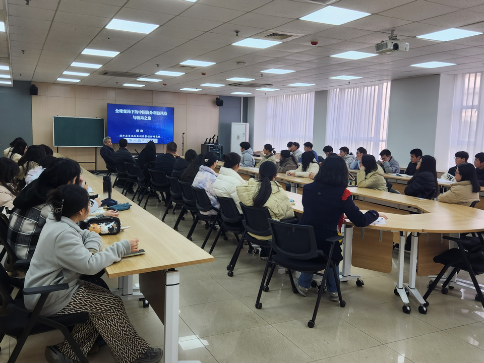 2025年12月30日,南京信息工程大学张韧教授应邀莅临理学论坛,作了题为《全球变局下的中国海外利益风险与破局之旅》的专题学术报告。报告会由副院长王正新主持,统计学系部分教师、学院部分本科生和研究生等40余人参加了本次学术活动。