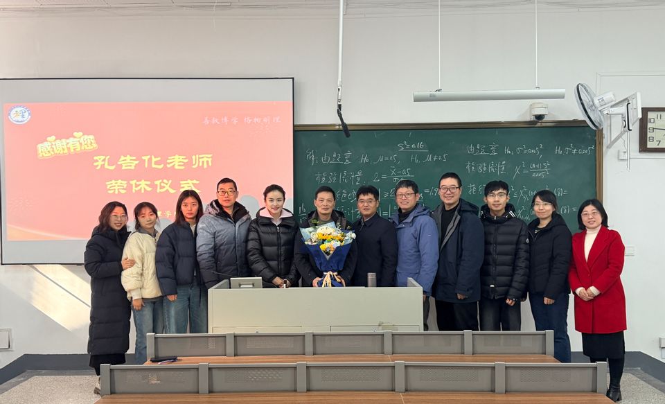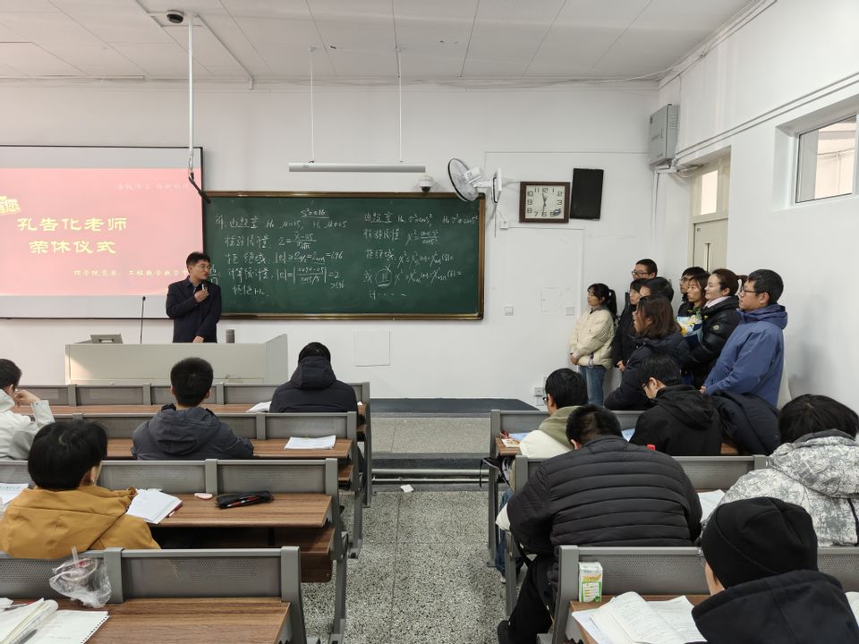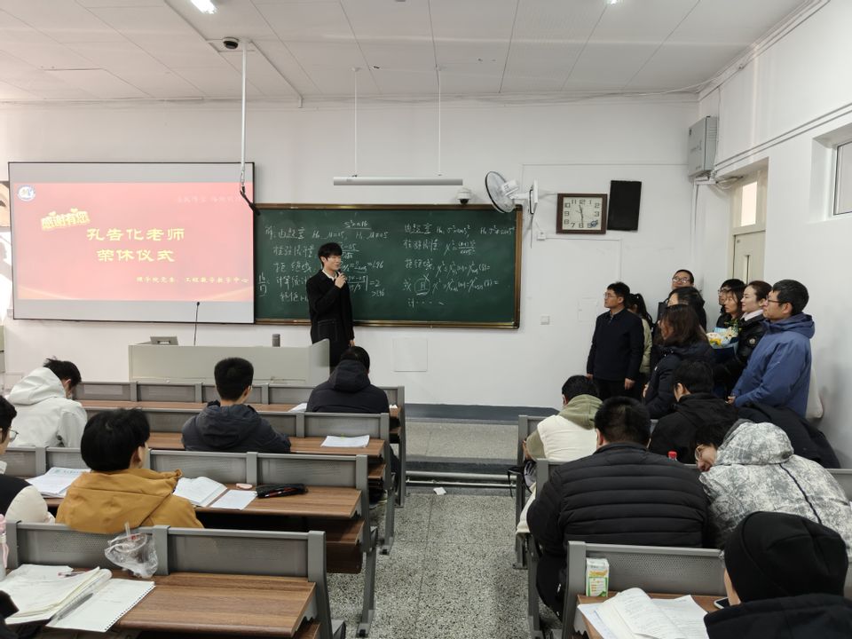 1月8日,437bwin必赢国际官网党委与工会为从教36年的孔告化教授举办了一场温馨而庄重的荣休仪式。院党委书记李永涛、党委副书记汪颖及工程数学教学中心教师代表共同出席,见证这一满载敬意与温情的时刻。仪式由工程数学教学中心主任闵莉花主持。
