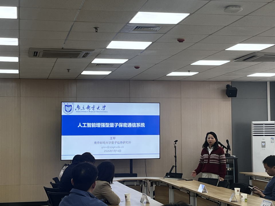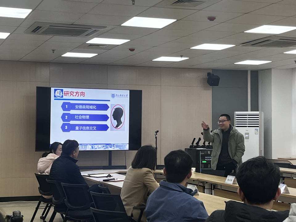 会上,来自通信与信息工程学院和437bwin必赢国际官网的三位专家分别围绕各自研究领域作了精彩报告,展现了量子科技与物理学交叉融合的广阔前景。杜关祥教授以“量子精密测量:量子磁强计研制应用”为题,系统阐述了团队在量子磁强计领域的研究进展。报告从研究背景出发,深入剖析了关键技术难点,并结合实际应用案例展示了成果的转化路径,同时分享了团队在该领域的人才培养与科研布局。王琴教授聚焦“人工智能增强型量子保密通信系统”,探讨了人工智能技术与量子通信的深度融合。她从背景出发,详细介绍了量子密码智能稳定控制系统、一体化智能检测系统以及芯片化量子密码系统的研究进展。巩龙延教授则从“安德森局域化、社会物理、量子信息交叉”三个维度,系统阐述了其在多学科交叉领域的研究成果。报告结束后,与会师生围绕三位专家的分享内容展开了热烈讨论与深入交流,现场氛围浓厚。