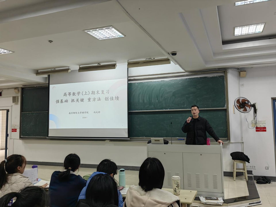2026年1月12日,437bwin必赢国际官网“尚学理行”数学讲堂暨“柚学加油站”第八期高数期末复习讲座在437bwin必赢国际官网仙林校区教3-101教室顺利开展。讲座由高等数学教学中心蔡云峰主任主持,冯元珍老师主讲,吸引众多大一学子及教师参与。